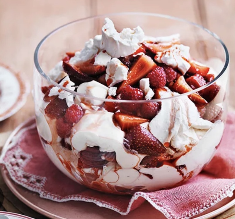 4.Scatter Eton mess with raspberries and extra strawberries and serve.